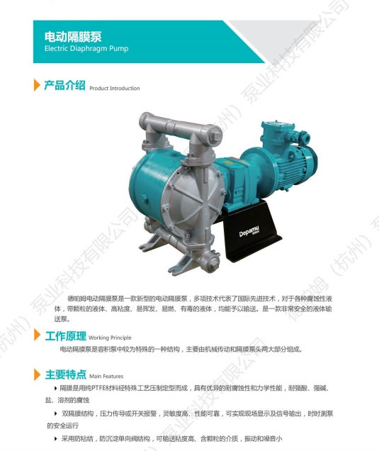 德帕姆電動隔膜泵是一款新型的電動隔膜泵,多項技術(shù)代表了國際先進(jìn)水平,對于各種腐蝕性液體,帶顆粒的液體、高粘度、易揮發(fā)、易燃、有毒的液體,均能予以輸送,是一款非常安全的液體輸送泵。